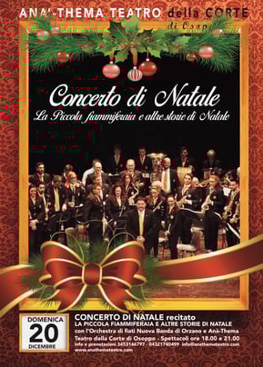 Dopo alcuni brani natalizi e musiche della tradizione, la serata proporrà la fiaba in musica di H.C. Andersen “La piccola fiammiferaia”, con la partecipazione degli attori Luca Ferri e Luca Marchioro.