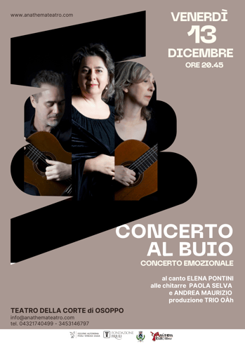 Il “Concerto Emozionale al Buio”, ideato dal trio OÀh, è un’esperienza unica che ha l’obiettivo di aumentare l’effetto della musica e del canto per il benessere della persona.