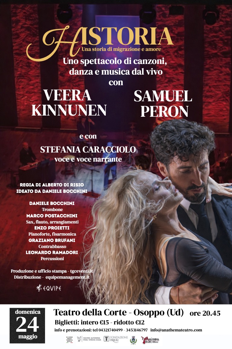Lo spettacolo, ideato dal maestro Daniele Bocchini, prodotto da TGC Eventi e distribuito da EQUIPE EVENTI di Fanzia Verlicchi, racconta una storia di riscatto e di emancipazione ambientata nella Buenos Aires degli anni ’30 del secolo scorso, nei luoghi in cui ebbe origine il tango. In una milonga d’altri tempi, Historia porta in scena le coreografie degli amatissimi maestri di ballo Samuel Peron e Veera Kinnunen, la straordinaria voce di Stefania Caracciolo (cantante e corista dell’orchestra di “Ballando con le Stelle” Rai 1) e la musica dal vivo di cinque musicisti d’eccezione: Daniele Bocchini (trombone), Marco Postacchini (sax, flauto, arrangiamenti), Enzo Proietti (pianoforte, fisarmonica), Graziano Brufani (contrabbasso), Leonardo Ramadori (percussioni).