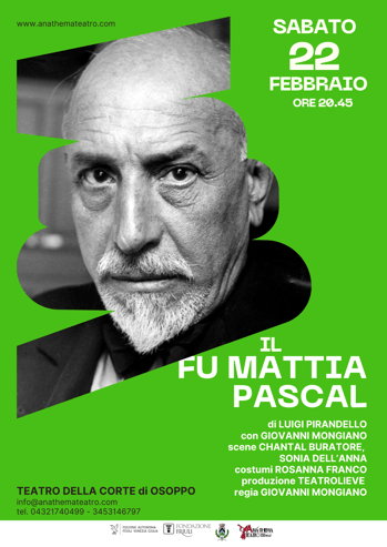 Scritto nel 1904 da Luigi Pirandello, capolavoro della letteratura del secolo scorso, “Il Fu Mattia Pascal” ci restituisce un personaggio impastato di gioia e di sofferenza, di riso e di pianto, di comico e di tragico, sempre sul filo tra umorismo e drammaticità. Lo stile pirandelliano e la sua scrittura spiccatamente ironica, paradossale, talvolta sarcastica, sono terreno invitante e fecondo per la proverbiale leggerezza interpretativa di Giovanni Mongiano, perfetto nel restituire non solo gli smarrimenti del protagonista in modo disincantato, ma anche le tinte e le sfaccettature dei vari personaggi che si avvicendano nella storia.