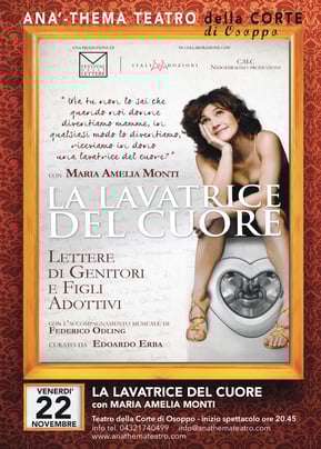 Dalle lettere raccolte per la categoria Lettura di un’adozione 2013, nasce La Lavatrice del cuore, spettacolo teatrale scritto da Edoardo Erba ed interpretato da Maria Amelia Monti.