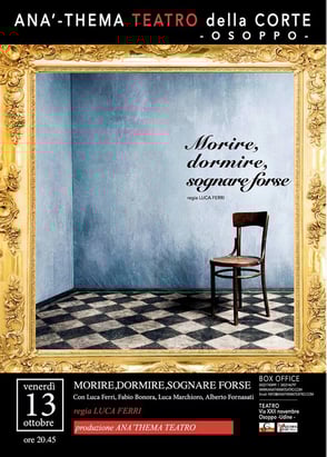 “Morire, dormire, sognare forse” è una riflessione per l’essere umano come uomo, come artista e come sognatore. Ogni uomo deve compiere un viaggio, durante e dopo la vita, che lo conduce alla verità e alla conoscenza; un viaggio che ogni uomo deve fare per conoscere il suo posto nell’esistenza; un viaggio che ogni figlio deve compiere per distaccarsi dai propri genitori. Si incontrano sul palco situazioni di quotidianità assurda che travalicano le epoche e gli spazi. Il desiderio di vivere insieme, la ricerca di una felicità spezzata con l’avanzare dell’età, i figli, la sofferenza e la morte, unico elemento che l’ha vinta su tutti gli altri.