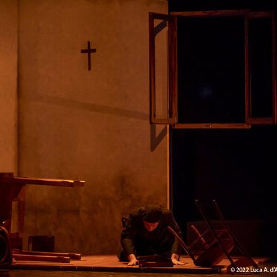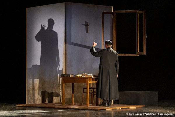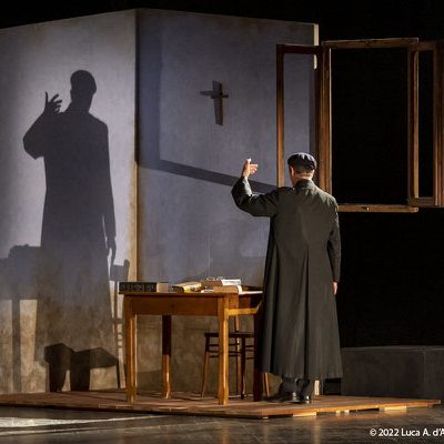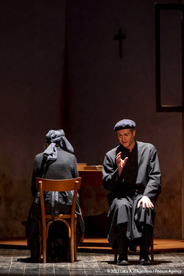 Sul palcoscenico viene ricostruita tramite semplici ed efficaci elementi, la sua casa d’infanzia ricca di ricordi. Padre David è nato in Friuli, a Coderno di Sedegliano in provincia di Udine, nono figlio di una povera famiglia di contadini, il 22 novembre 1916. Frate e sacerdote nell’Ordine dei Servi di Maria, visse presso il Convento di San Carlo al Corso in Milano gli anni della Resistenza e della ricostruzione civile. In quel contesto diede vita alla “Messa della Carità” e insieme all’amico e confratello Camillo de Piaz al centro culturale “Corsia dei Servi”.