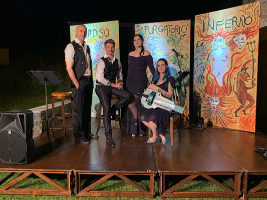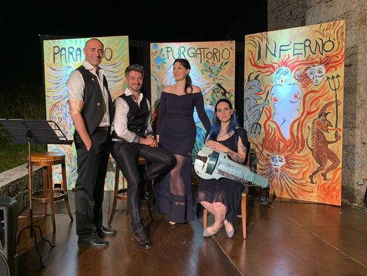 Gli attori Luca Ferri e Luca Marchioro, accompagnati dalla voce cantata di Federica Copetti e dalla particolare musicalità della Ghironda suonata dal vivo da Martina Fabris vi condurranno in un viaggio per conoscere ed amare quella grande opera immortale che è la Divina Commedia.