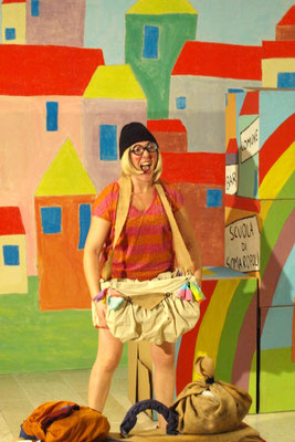 Mandi e Lella partono per un viaggio immaginario intorno al mondo, viaggiano attraverso vari paesi. Si fermano sull’Isola Arcobaleno, dove incontrano bambini di diverse nazionalità e culture; nel lontano Villaggio Grigio, dove ci sono adulti cattivi che maltrattano i bambini; nel Paese dell’Altrui, dove ognuno non pensa mai solo a se stesso; nella Città dei Soldatini, triste luogo sempre in guerra; nello stato dei Bambini Addormentati, dove gente senza scrupoli sfrutta il lavoro dei piccoli per i loro interessi. Mandi e Lella infine fanno ritorno all’isola che prende il nome della città dove si svolge lo spettacolo. I protagonisti ritornano consapevoli dei tanti problemi che affliggono i bambini di tutto il mondo e s’ impegnano ad affermare e far conoscere i loro diritti. Lo spettacolo fa riferimento agli articoli della famosa “Convenzione sui Diritti dell’Infanzia” dell’ONU, toccando argomenti di grande attualità (guerra, fame, violenza sui minori, povertà, sfruttamento, discriminazione dell’handicap, ecc.), sempre dal punto di vista dei bambini. La scena è composta da grandi cubi colorati, sulle quali facce sono dipinti i luoghi del viaggio. Gli attori si travestono e giocano ad interpretare tutti i personaggi utilizzando buffi costumi. Uno spettacolo divertente, riflessivo ed interattivo, sono infatti previsti momenti di gioco-didattico con i ragazzi.