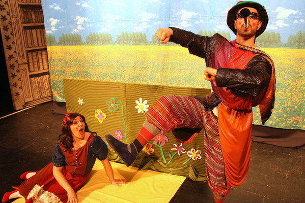 In questo allestimento ricco di suggestioni e di invenzioni, le due attrici fanno il viaggio della piccola Dorothy utilizzando molte tecniche teatrali, passando dai pupazzi alle ombre, dai buffi travestimenti a passaggi colorati e divertenti.
