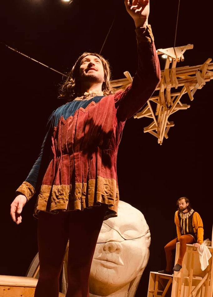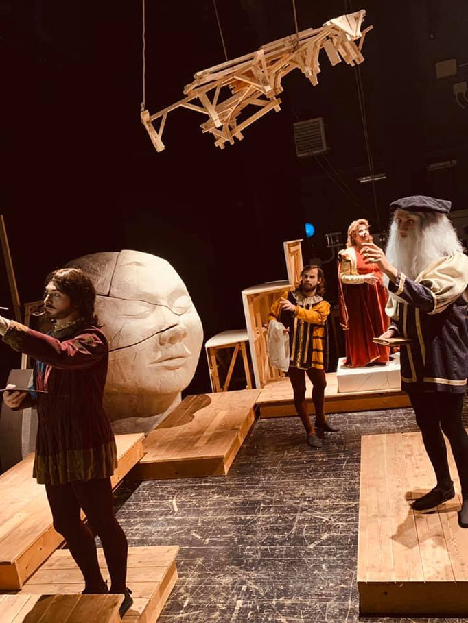 Si potrebbe definire un docu-spettacolo che attraverso i vari linguaggi della scena racconterà la vita e le invenzioni di Leonardo.