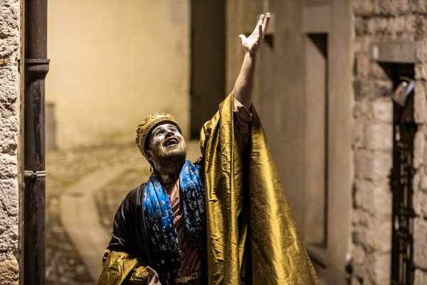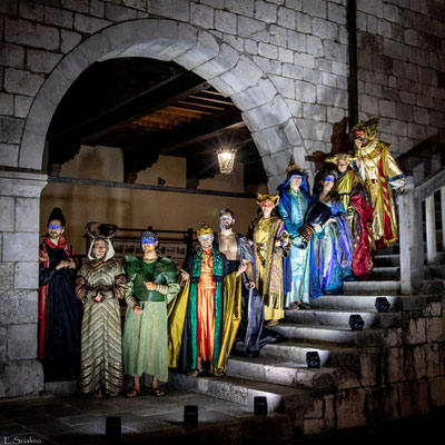 Zodiaco è uno spettacolo itinerante che trasforma lo spazio urbano in una costellazione vivente. Dodici attori danno corpo e voce ai dodici segni zodiacali, suddivisi nei quattro elementi – terra, aria, acqua e fuoco – che ne definiscono carattere ed energia. Ogni personaggio si presenta attraverso un monologo evocativo, in cui emergono le qualità, le contraddizioni e i tratti distintivi del proprio segno, spesso ispirati ai miti e alle figure della mitologia classica. I costumi, ricchissimi e fortemente caratterizzati, uniti a un trucco scenico studiato nei minimi dettagli, creano un impatto visivo sorprendente e suggestivo. Il pubblico viene invitato a muoversi tra le presenze zodiacali, incontrando simboli, archetipi e atmosfere diverse. Uno spettacolo affascinante e immersivo, che intreccia teatro, astrologia e mito, pensato per coinvolgere e incuriosire spettatori di tutte le età.