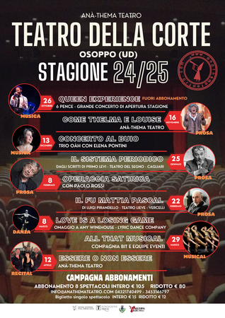 Ancora una volta siamo orgogliosi di raccontarvi un calendario ricco di appuntamenti e per la prima volta il nostro cartellone accoglie tutti i generi di spettacolo...dalla Prosa alla Danza, al Musical, alla Musica e Recital.
